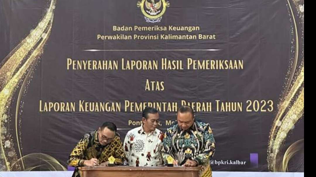 Sekda Kab.Ketapang, Alexander Wilyo mewakili Bupati Ketapang menerima Laporan Hasil Pemeriksaan atas Laporan Keuangan Pemerintah Daerah TA 2023 dari BPK RI, dan pada tahun ini kita mendapat opini WTP (Wajar Tanpa Pengecualian) untuk yang ke 10 kalinya secara berturut-turut sejak tahun 2015.