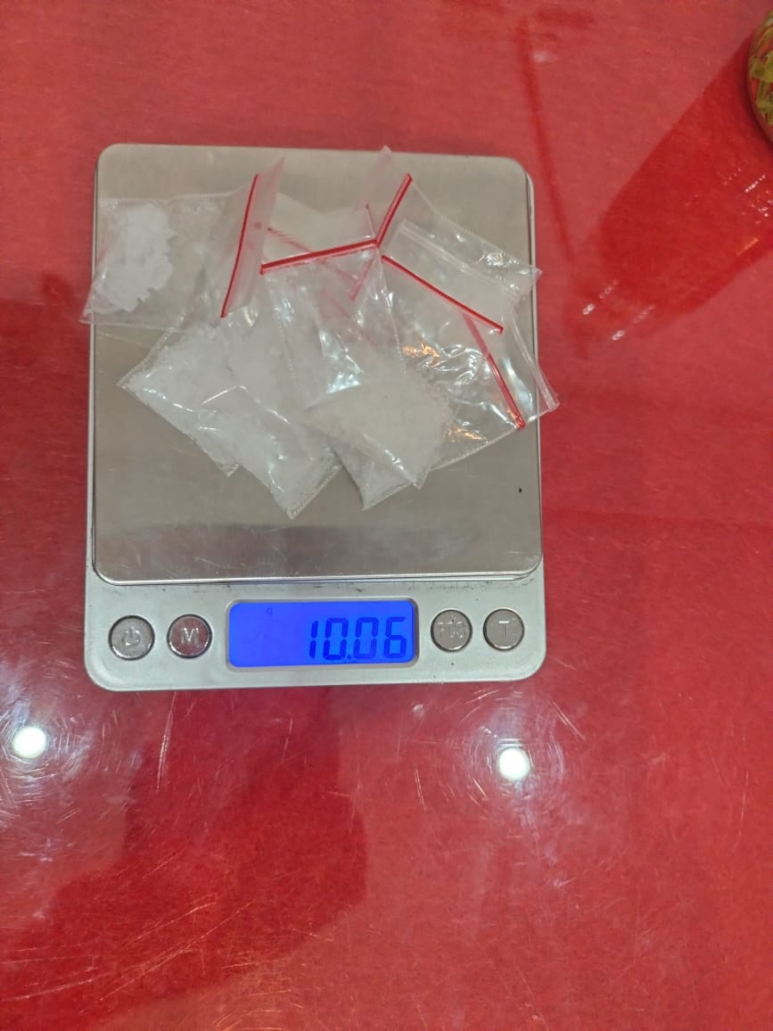 Dari hasil penggeledahan yang dilakukan oleh petugas, ditemukan sembilan paket plastik klip bening berisi kristal putih yang diduga kuat narkotika jenis sabu dengan total berat bruto 10,6 gram. Selain itu, petugas juga mengamankan 2 buah sendok sabu, 1 bungkus plastik klip kosong, 1 set bong alat hisap sabu, 5 buah korek api gas, Uang tunai sebesar Rp. 350.000 serta 2 unit handphone milik pelaku yang diduga digunakan untuk berkomunikasi dengan pembeli.