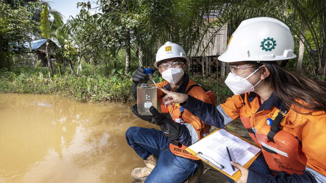 pada saluran air, revegetasi area tidak aktif serta pemantauan kualitas air yang konsisten. “Kami menjalankan program